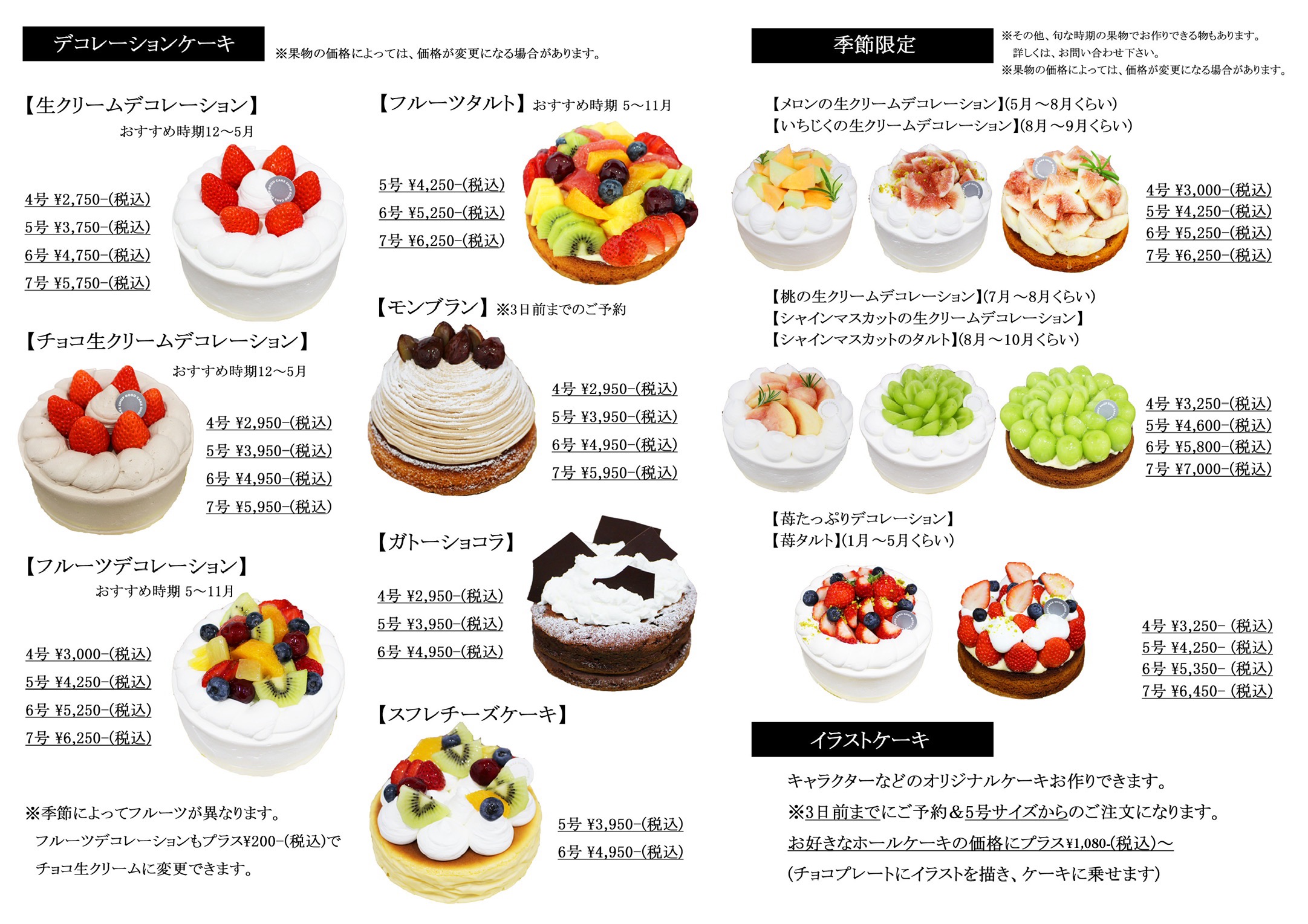 デコレーションケーキのメニュー★右の画像をクリック!!
